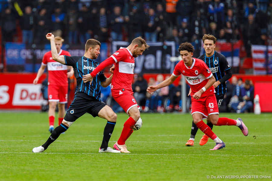 Alweer een verstoorde voorbereiding op deze belangrijke wedstrijd, onder de fiere aanhang van de Great Old genoeglijk 'The Hate Game' genoemd. ASC Antwerp Dynamite had een mooie sfeeractie op tribune vier voorbereid, zonder verboden middelen, wel met een knappe tifo en honderden rood-witte vlaggen. Team Stef Wils zag tijdens de faliekant afgelopen dubbele confrontatie op vrijdag en maandag in het Stade Maurice Defrasne, alweer een valabele kracht uitvallen. Ten koste van uitsluiting, slechts na interventie vanuit Basecamp Tubize, werd Andreas Verstraeten zomaar van het veld getrapt door Abid. De spoeling stilaan erg dun, wijzigde de Antwerpcoach zijn elftal desondanks op twee plaatsen. Boubacar Kouyaté liep voor het eerst centraal in verdediging ter vervanging van de langdurig geblesseerde Andreas Verstraeten. Eveneens clubopgeleide Youssef Hamdaoui had de voorkeur op Christopher Scott, die een zitje gereserveerd kreeg in een van de imposante dug-outs van het Bosuilstadion. Eveneens imposant de voltooiing naderende spiksplinternieuwe tribune twee én de keuzemogelijkheden van de technische staf van de tegenstander voor deze wedstrijd van de Havengemeenschap. Oud-Antwerpspeler Hayen kon zowaar op vier plaatsen roteren, zonder aan kwaliteit in te boeten. De beide aanvoerders maakten kort voor de Brugse aftrap hun opwachting bij wedstrijdleider (?) Laforge, o.a. bijgestaan door een LUIKSE assistent, begrijpe wie kan!