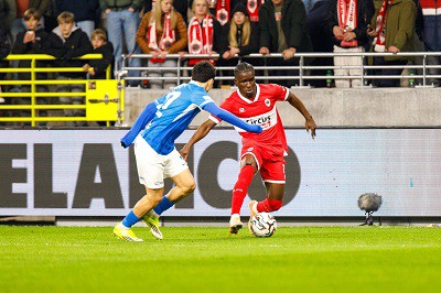 Het werd deze eerste speeldag van de Europe Play-Offs geen blij weerziens met scheidsrechter D'Hondt. Aangeduid om deze wedstrijd naar analogie met het bondsreglement in goede banen te leiden, werd deze "wedstrijdleider" aan het einde van de dramatisch verlopen wedstrijd voor het eerst in vele jaren onder een striemend 'dief, dief' uitgeleide gedaan in het Bosuilstadion. De beelden van DAZN zijn inderdaad vernietigend voor de beslissing van den hond! Team Joseph Oosting leverde door toedoen van de (inconsequente) arbitrage al voor de vijfde opeenvolgende keer aan kwaliteit in. De rood-witte technische staf had dit keer de opdracht een waardige vervanger te voorzien voor de geschorste Zeno Van den Bosch. Bovendien werd de wedstrijdkern getroffen door het onbegrijpelijke Nederlandse paspoortengate. Zo spuugden de Noorderburen meerdere landgenoten uit die beroofd werden van hun nationaliteit. Ondanks zijn geldige Belgische verblijfsstatuut was het zodoende verre van duidelijk of Gyrano Kerk speelgerechtigd was. Hij zou dus veiligheidshalve het wedstrijdblad niet halen. Gerard Vandeplas liep in diens plaats de startersrij in. Er was ondertussen wel goed nieuws uit de blessureboeg. Mauricio Benitez werd de vervanger in defensie en Thibo Somers kwam de rechterwingbackpositie invullen. Farouck Adekami (foto: De ANTWERPSUPPORTER Online) was klaar om in de loop van de partij een actieve rol te vervullen. Bij KRC Genk werd verrassend genoeg geopteerd voor een jonge doelman tussen de palen. | |